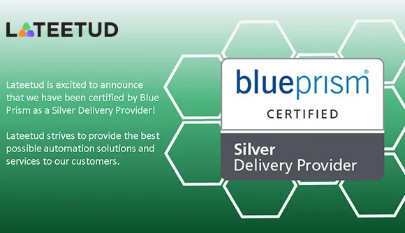 Blue Prism has recognized Lateetud as one of their Silver Delivery Providers, based on Lateetud’s ability to deliver the highest quality RPA solutions and services...
