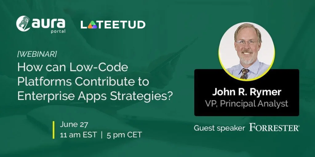 Don't miss out on the #FreeWebinar with AuraPortal and Lateetud featuring Forrester analyst John R. Rymer on June 27th at 11am EST | 5pm CET - How can Low-Code Platforms Contribute to Enterprise Apps Strategies?...