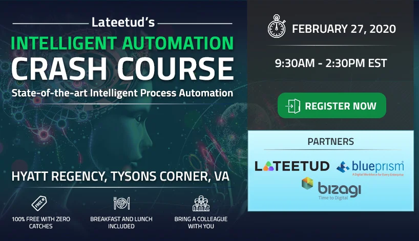 The Lateetud and Blue Prism Intelligent Automation (IA) Crash Course is a virtual, can't-miss event that will walk you through the key steps and success...